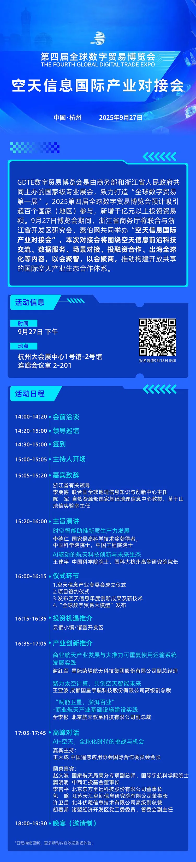 活動:空天信息國際產(chǎn)業(yè)對接會|第四屆全球數(shù)字貿(mào)易博覽會(GDTE 2025)