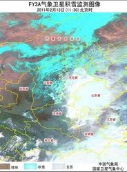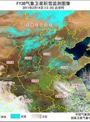 FY3B/VIRR 2月14日13時(shí)25分氣象衛(wèi)星積雪監(jiān)測(cè)圖像(3sNews 配圖)