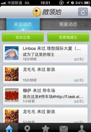 新浪微博推出地理位置服務(wù)“微領(lǐng)地”,進(jìn)入LBS市場,目前僅提供iPhone和Android版本。
