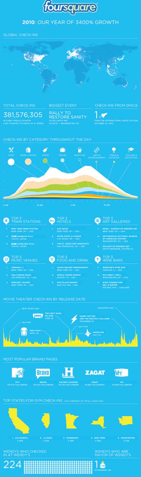 當(dāng)Facebook、Twitter因?yàn)楣乐档牟粩囡j升而屢受業(yè)內(nèi)關(guān)注的時(shí)候,近日,定位于LBS的Foursquare悄然發(fā)布了其最新的Foursquare3.0版本,進(jìn)而引發(fā)了業(yè)內(nèi)的關(guān)注。當(dāng)人們由此回首Foursquare過(guò)去一年的發(fā)展時(shí),更是大吃一驚。據(jù)統(tǒng)計(jì),在過(guò)去的一年中,F(xiàn)oursquare注冊(cè)用戶數(shù)量已經(jīng)突破已超600萬(wàn)。就“簽到(check-in)”次數(shù)而言,F(xiàn)oursquare整個(gè)2010年簽到次數(shù)達(dá)到了381,576,305億,比上一年大增了3400%。目前,F(xiàn)oursquare每天的“簽到”數(shù)量達(dá)到200萬(wàn)次,每天新增2.5萬(wàn)用戶。那為何Foursquare會(huì)取得如此飛速的發(fā)展,尤其是在去年全球社交網(wǎng)絡(luò)老大Facebook宣布退出類似于Foursquare功能及服務(wù)的Places之后,而被業(yè)內(nèi)普遍認(rèn)為會(huì)遭受沉重打擊的情況下。