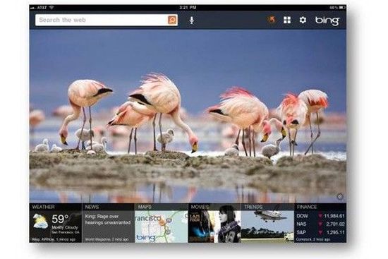 微軟雙管齊下,同時為iPad推出了專用的必應搜索引擎。