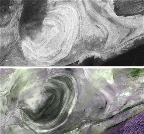 課題通過(guò)多源雷達(dá)遙感圖像解譯以及極化雷達(dá)特征分析,取得以下3點(diǎn)重大科學(xué)發(fā)現(xiàn):