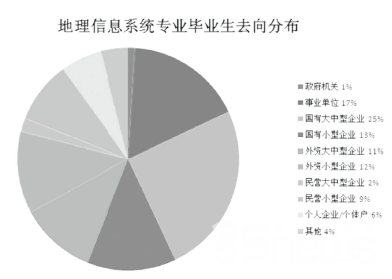 從就業(yè)的所屬行業(yè)上說(shuō),地理信息畢業(yè)生去向主要分布在測(cè)繪系統(tǒng)單位,包括基礎(chǔ)地理信息中心、測(cè)繪院、測(cè)繪大隊(duì)、勘測(cè)院等;城市規(guī)劃局系統(tǒng)單位;國(guó)土局系統(tǒng)單位;電力系統(tǒng)單位;水利系統(tǒng)單位;交通系統(tǒng)單位;高校院所等。