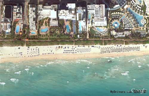 由于盛夏將至,出游度假高潮即將到來,Google特意更新了大批旅游勝地的照片,比如下邊就是美國佛羅里達(dá)州邁阿密市最著名的旅游勝地南沙灘(South Beach)。這張航拍照片的拍攝時間是今年三月份。