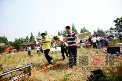 “由于場地的原因,本次采用彈射式起飛和傘降。”省第二測繪院工程師告訴記者,省測繪科技研究所也發(fā)射了一套無人機航測系統(tǒng)對益陽桃江旱情航拍。