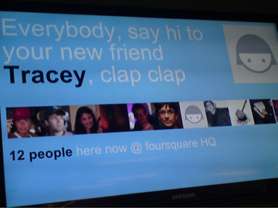 每個在Foursquare總部簽到的用戶都會出現(xiàn)在這面墻上