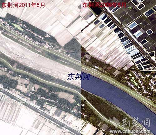 從這張鑲嵌而成的影像圖中可以看到東荊河已經(jīng)斷流