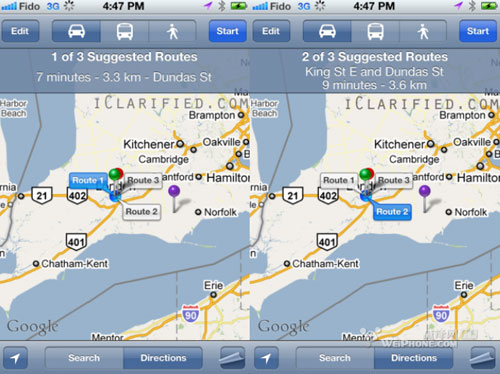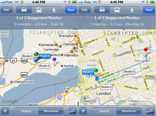 谷歌地圖在iOS5上增加備用多路線指示功能