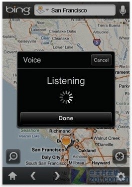 而新的Bing APP程序不僅僅是提供了地圖查詢,并且和Google一樣推出了語音搜索功能與圖像對比搜索功能,并帶有一個非地名搜索功能,而這個APP程序和WEB版相同,每天都會有精彩導(dǎo)航圖片出現(xiàn),應(yīng)該是Bing的另一大特色吧。