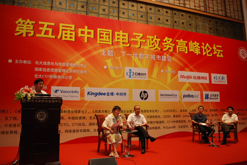 以“下一代數(shù)字城市建設(shè)”為主題的“第五屆中國電子政務(wù)高峰論壇”于2011年6月25日在北京大學(xué)英杰交流中心陽光大廳隆重舉行。本次論壇由北京大學(xué)信息化與信息管理研究中心、國家信息資源管理北京研究基地和北大CIO班教務(wù)辦公室主辦,CIO時(shí)代網(wǎng)和銳捷網(wǎng)絡(luò)承辦、北達(dá)軟協(xié)辦。