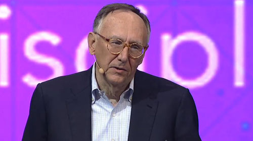 Esri總裁Jack Dangermond首先進(jìn)行了大會(huì)發(fā)言(視頻截圖)