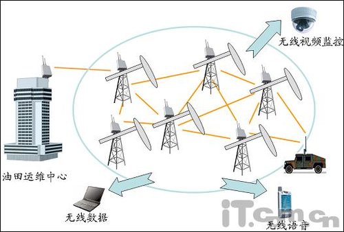 油田地理位置具有特殊的環(huán)境,并且受到客觀條件的限制,因而實現(xiàn)油田內(nèi)部的通信首要問題就是要克服地理環(huán)境所帶來的限制,無線網(wǎng)絡(luò)技術(shù)可免除架設(shè)電纜光纜線的工程,不需要任何的線纜工程,即可構(gòu)建一個完全無線化的、高覆蓋率的網(wǎng)絡(luò)系統(tǒng),可以輕松實現(xiàn)油田與油田,油田與總部之間的點對點聯(lián)系,同時在同一油田,無線網(wǎng)絡(luò)連接可提供從鉆井臺到壓縮機房的數(shù)據(jù)鏈路以便顯示和輸入由鉆井獲取的重要數(shù)據(jù)。