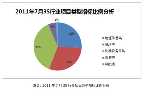2011年7月,由3sNews旗下市場(chǎng)情報(bào)刊物《3S行業(yè)內(nèi)參》整理發(fā)布的招投標(biāo)項(xiàng)目共有77條,中標(biāo)公告16條,更正公告5條。
