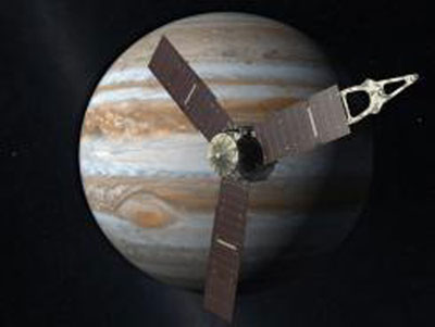 本次發(fā)射的探測器名為朱諾,事實(shí)上,木星在英語中叫丘比特,羅馬神話中丘比特的妻子名叫朱諾。探測器安裝了三大塊太陽能電池板,它將成為使用太陽能運(yùn)行距離最遠(yuǎn)的設(shè)備。