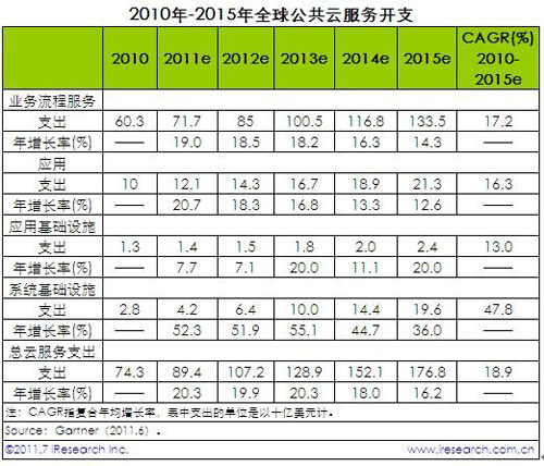 艾瑞預測至2015年全球云服務支出年均增長19%