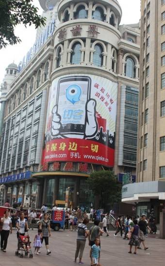 2011年8月,上海人民廣場(chǎng)與南京路步行街交接的新世界商場(chǎng)之上,出現(xiàn)了一幅巨型戶外廣告。對(duì)于長(zhǎng)期在附近工作的上班族而言,之前這個(gè)牌子從來(lái)都是Dior、Chanel、歐米伽等奢侈品牌所占據(jù),忽然換上了一塊互聯(lián)網(wǎng)廣告的內(nèi)容,讓他們覺(jué)得頗為新奇。據(jù)悉,這次是新世界商場(chǎng)首次將該廣告位租借給非本商場(chǎng)內(nèi)的品牌客戶。而圍繞著這個(gè)廣告牌,附近的公交車站,地鐵車站的大量廣告投放,也讓許多人處處可見(jiàn)切客的影子。