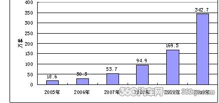 2005-2010年中國車載GPS導(dǎo)航產(chǎn)品銷量數(shù)據(jù)