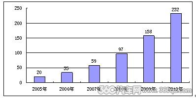 2005-2010年中國車載GPS導(dǎo)航生產(chǎn)商增長數(shù)據(jù)
