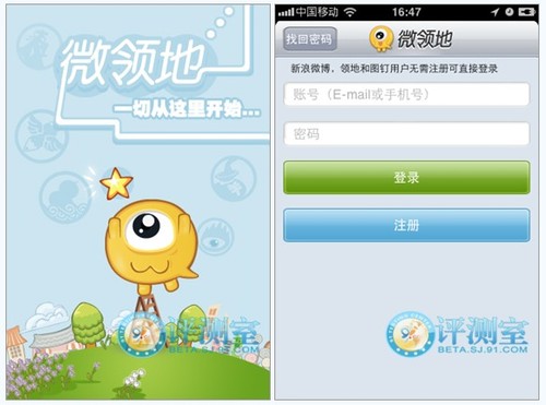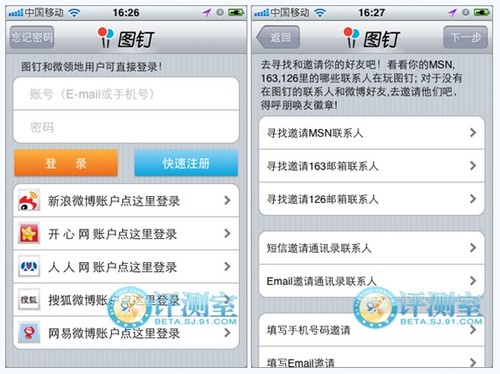 支持騰訊微博和新浪微博兩款第三方賬號登陸。