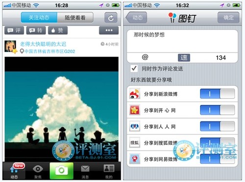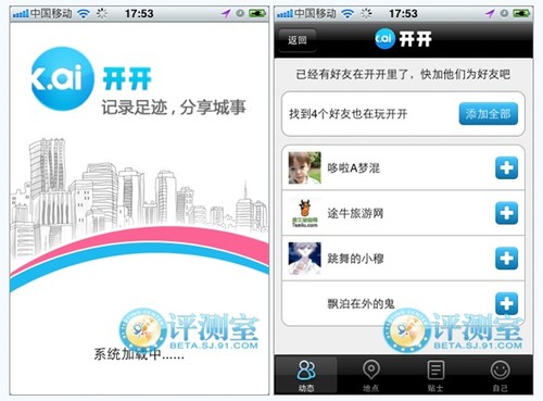 可與新浪微博、騰訊微博、搜狐微博以及人人網(wǎng)、開心網(wǎng)、豆瓣等SNS社區(qū)的好友們分享足跡。