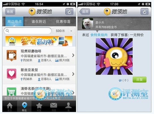 微領(lǐng)地和圖釘是屬于同一個公司的,它和新浪微博也是同出一源可以說就是新浪官方的LBS產(chǎn)品。支持簡單的簽到,更支持優(yōu)惠券和隨機優(yōu)惠獲取,可以說營銷做得相當(dāng)?shù)轿弧?/p>