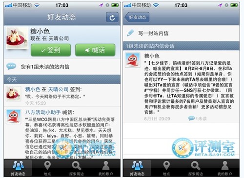 簽到的信息可以同步到網(wǎng)易微博、新浪微博、人人網(wǎng)、開心網(wǎng)和豆瓣網(wǎng)五大平臺。