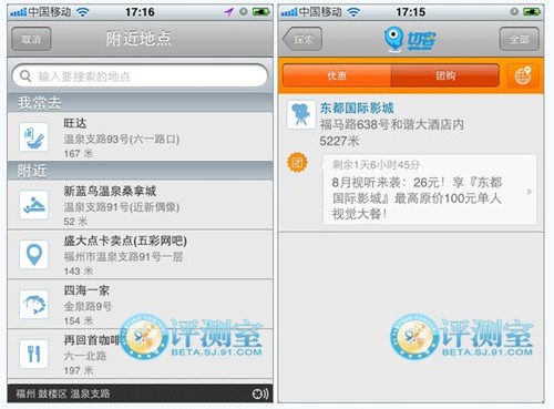 這款軟件最大的特點在于其簽到功能弱化,反而是尋店和優(yōu)惠、團購信息功能突出。