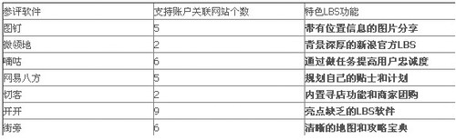 評測主要從賬戶關(guān)聯(lián)度和特色LBS功能進行分析。界面親和力、用戶粘度培養(yǎng)等輔助。