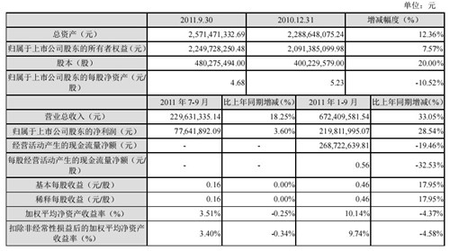 公司三季度共實(shí)現(xiàn)營業(yè)收入6.72億元,同比增長33.05%;實(shí)現(xiàn)凈利潤2.20億元,同比增長28.54%。同時(shí),公司預(yù)計(jì)全年業(yè)績將實(shí)現(xiàn)穩(wěn)定增長,增幅為20%~50%,符合年初預(yù)定目標(biāo)。