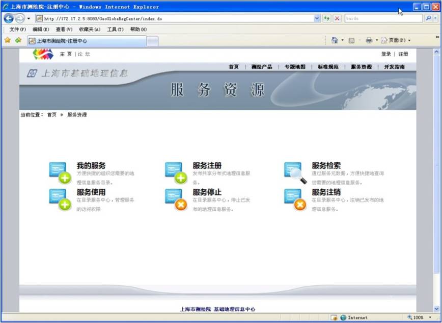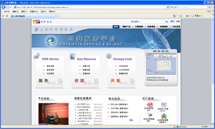 上海市地理信息公共服務(wù)平臺是以上海市基礎(chǔ)地理空間信息資源為基礎(chǔ),以上海市公共地理空間框架數(shù)據(jù)為核心,利用現(xiàn)代信息服務(wù)技術(shù),建立一個面向政府和行業(yè)用戶的、開放式的信息服務(wù)平臺,對各種分布式的、異構(gòu)的地理信息資源進(jìn)行一體化組織與管理。