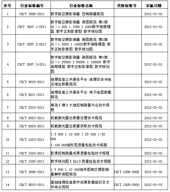 3sNews 訊 昨日《國家測繪地理信息局公告第3號》發(fā)布了《數(shù)字航空攝影測量控制測量規(guī)范》等14項測繪地理信息行業(yè)標(biāo)準(zhǔn)。該系列標(biāo)準(zhǔn)的標(biāo)志著地理信息產(chǎn)業(yè)行業(yè)標(biāo)準(zhǔn)建設(shè)又取得了重大的進(jìn)展,這是繼今年2月首推的6項地理信息標(biāo)準(zhǔn)之后,測繪地理信息局在地信息標(biāo)準(zhǔn)建設(shè)方面的又一舉措。