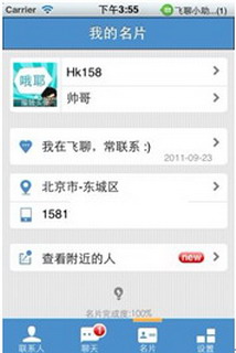 用戶可通過點(diǎn)擊飛聊1.1.0beta版主頁(yè)面的“查看附近的人”界面搜索你身邊的所有“飛聊”用戶。