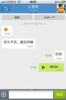 此外,為了滿足三大主流系統(tǒng)版本(IOS、Symbian、Android)用戶不同的使用需求,飛聊1.1.0beta版還根據(jù)各系統(tǒng)版本的承載性,推出了不同的優(yōu)化功能。其中,IOS版本不僅對(duì)聊天頁(yè)面進(jìn)行了更加易于操作的性能優(yōu)化,同時(shí)為了給用戶帶來更加美化的視覺效果,新版本還對(duì)輸入框的高度、視覺以及發(fā)送框的位置進(jìn)行了細(xì)節(jié)調(diào)整。