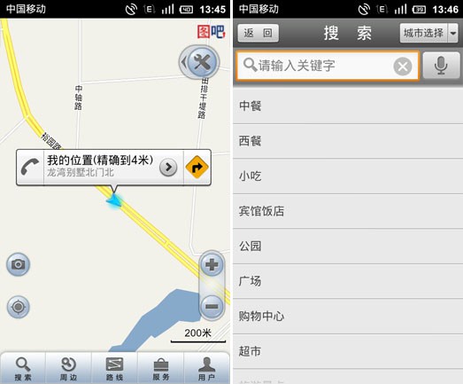 百度地圖Android2.1.0,支持衛(wèi)星圖、3D圖,提供更立體、直觀的地圖瀏覽體驗。提供的分城市離線地圖包,節(jié)省90%以上的流量的同時快速提升搜索和瀏覽體驗。