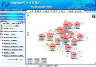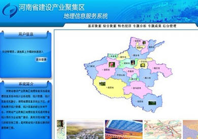 河南省建設(shè)產(chǎn)業(yè)聚集區(qū)地理信息服務(wù)系統(tǒng)界面