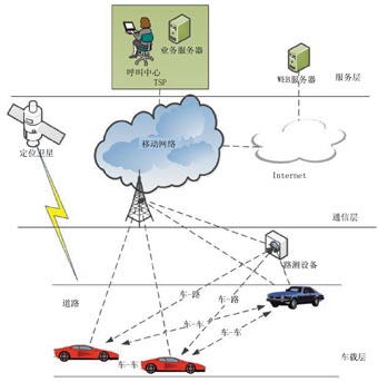 服務(wù)層注重人、社會(huì)、車的統(tǒng)一,它把這三方面的服務(wù)提供給最終用戶。服務(wù)層是一個(gè)服務(wù)解決方案的提供層,各服務(wù)運(yùn)營商面對(duì)不同的用戶需求把各種車載產(chǎn)品和數(shù)據(jù)服務(wù)網(wǎng)絡(luò)進(jìn)行有機(jī)結(jié)合,向用戶提供有特色的、個(gè)性化的服務(wù)。通訊層是把車載和服務(wù)結(jié)合起來的紐帶,無線通訊技術(shù)將會(huì)為車載通訊帶來更多的變化。車載層是所謂的各種車載終端和道路探測設(shè)備。