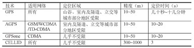 在這兩種定位技術(shù)均無法使用的環(huán)境中,GPSone會(huì)自動(dòng) 切換到Cell-ID定位方式,從而確保定位成功率。比之單純的GPS定位技術(shù)具有如下特點(diǎn)(見表1):