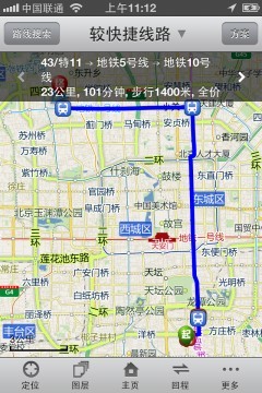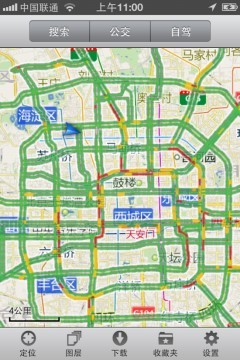 除此之外,搜狗地圖iphone版客戶端繼承了搜狗地圖PC端一貫細(xì)致而全面的功能。提供三個(gè)圖層,地圖、衛(wèi)星、混合(衛(wèi)星+路網(wǎng)),并打開(kāi)顯示路況按鈕,還能在地圖上實(shí)時(shí)顯示路況信息,16個(gè)城市的實(shí)時(shí)路況參考,輕松避開(kāi)擁堵路段,實(shí)時(shí)準(zhǔn)確的定位,隨時(shí)掌握所處位置。如下圖。