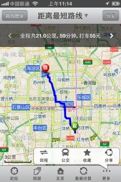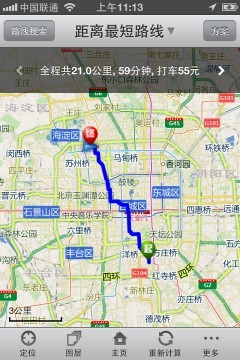 并且,搜狗地圖還提供自駕路程計(jì)算功能,提供路橋費(fèi)和打車費(fèi)用的計(jì)算。并可方便切換回程及公交線路,非常實(shí)用。