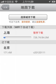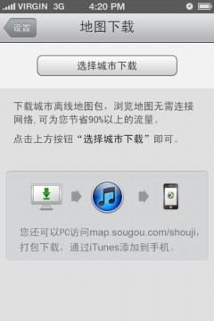 此次推出搜狗手機(jī)地圖iphone版本還支持離線地圖下載。離線瀏覽,能夠?yàn)橛脩艄?jié)省90%以上的流量,支持全國(guó)上百個(gè)城市的離線包下載。如果你用WIFI可以直接在手機(jī)上下載。也可以電腦上下載后,用itunes導(dǎo)入。