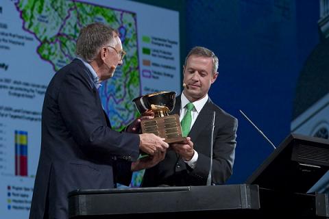 ESRI總裁 Jack Dangermond向馬里蘭州州長馬丁·奧馬利頒發(fā)ESRI總裁獎