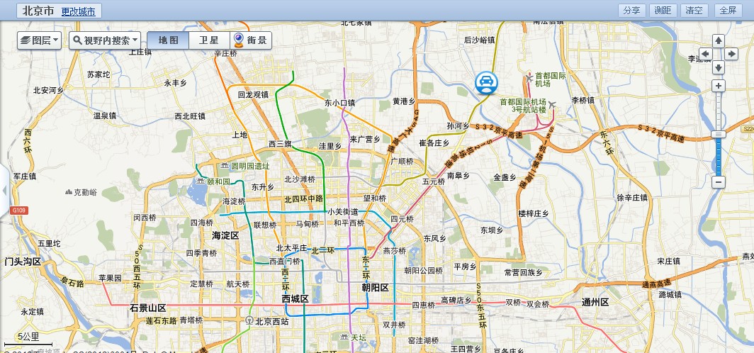 選擇北京后,可以看到藍(lán)色的汽車圖標(biāo)