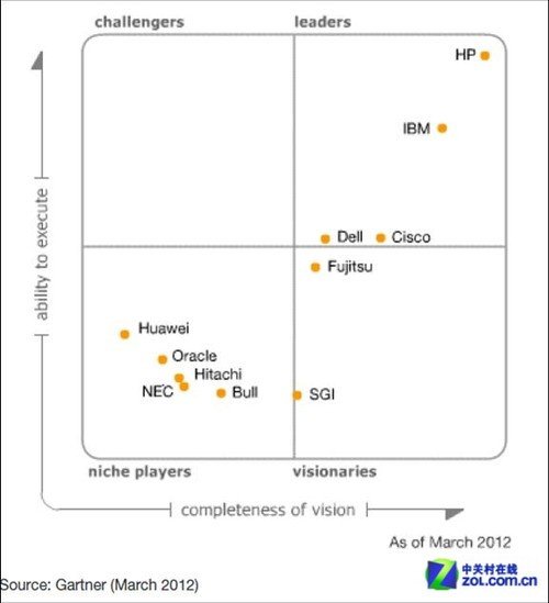 近年來(lái)華為T(mén)ecal服務(wù)器快速增長(zhǎng),取得了豐碩成果,從電信應(yīng)用不斷進(jìn)入互聯(lián)網(wǎng)、政府、大型企業(yè)應(yīng)用領(lǐng)域。有數(shù)據(jù)顯示,僅在去年,華為服務(wù)器銷(xiāo)售額增長(zhǎng)就高達(dá)130%,服務(wù)于全球知名企業(yè)及TOP互聯(lián)網(wǎng)公司。2012年華為進(jìn)入Gartner刀片服務(wù)器魔力四象限,市場(chǎng)影響力再次得到放大。