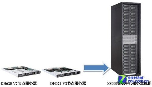 對(duì)于更大規(guī)模IT環(huán)境和業(yè)務(wù)應(yīng)用,用戶也可以選擇由DH620 V2、DH621 V2節(jié)點(diǎn)服務(wù)器組建起來(lái)的一體化IT解決方案。DH620 V2、DH621 V2都支持2個(gè)至強(qiáng)E5處理器和24個(gè)內(nèi)存插槽,內(nèi)置USB、TPM加密卡和“黑匣子”功能。不同的是前者支持4*2.5英寸SAS/SATA硬盤(pán)和2個(gè)GPU卡;后者支持8*2.5英寸SAS/SATA硬盤(pán)和1個(gè)PCIe卡。這兩類節(jié)點(diǎn)服務(wù)器都可以安裝在X8000數(shù)據(jù)中心服務(wù)器機(jī)柜中。該機(jī)柜支持80個(gè)半寬節(jié)點(diǎn)或40個(gè)全寬節(jié)點(diǎn),最大可部署160個(gè)處理器(1280核),它采用2500W大功率電源,轉(zhuǎn)換效率高達(dá)94%,支持動(dòng)態(tài)節(jié)能。