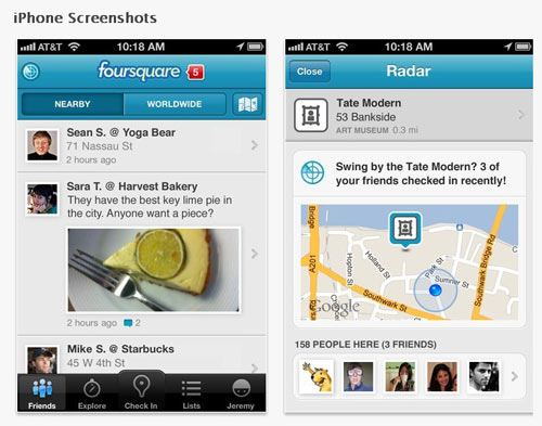 2. 把地理位置和思維空間結(jié)合起來的是Foursquare,它在你簽到時獲得你得地理位置,鼓勵你分享你的行蹤;向你頒發(fā)各種勛章;并從別人的動態(tài),行蹤,推薦中受益。