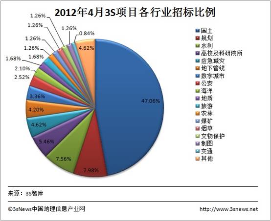 圖3:2012年4月3S項(xiàng)目各行業(yè)招標(biāo)比例