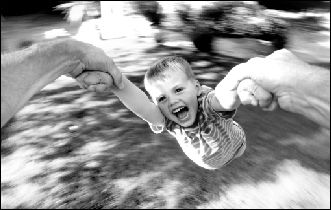 圖倫與兒子嬉戲時(shí)拍攝了下面的照片。他一邊抓住兒子雙手原地旋轉(zhuǎn),一邊用谷歌眼鏡拍下了兒子當(dāng)時(shí)的表情。圖片信息顯示,這張照片的分辨率為2048×1536,這意味著眼鏡攝像頭的像素約為320萬(wàn)像素。