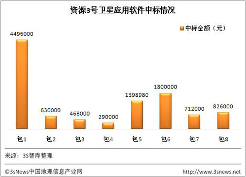 3sNews訊 根據(jù)《3S行業(yè)內(nèi)參》(從20120514期到20120518期),3S智庫整理本周內(nèi)招標、中標項目,中標金額達千萬元的單子包括國家測繪地理信息局衛(wèi)星測繪應(yīng)用中心資源三號衛(wèi)星應(yīng)用系統(tǒng)項目-專業(yè)軟件采購項目。該招標項目公示日期為2012年4月20日,定標日期為2012年05年14日,項目共分8個包,由8家企業(yè)分得相應(yīng)蛋糕,中標金額最低29.00萬元,由北京世紀安圖數(shù)碼科技發(fā)展有限責(zé)任公司中標,最高中標金額為449.6萬元,由北京視寶衛(wèi)星圖像有限公司奪得,中標總金額達1062.10萬元。