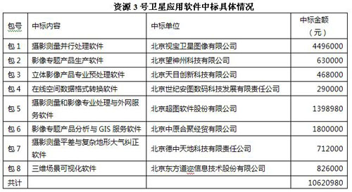 資源3號衛(wèi)星于2012年01月09日發(fā)射升空,是我國首顆民用高分辨率光學(xué)立體測圖衛(wèi)星,國家對其軟硬件投入上億元巨資,影像質(zhì)量的好壞不僅與硬件有關(guān),也與處理軟件有關(guān),此次專業(yè)軟件項目內(nèi)容豐富,包括影像處理、數(shù)據(jù)服務(wù),預(yù)計會滿足不同用戶的多級需求。