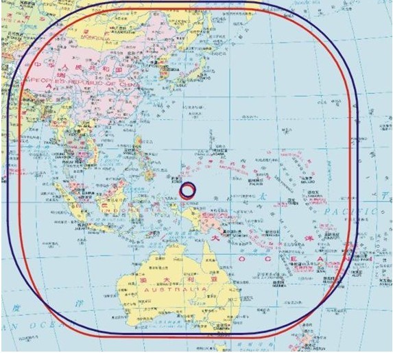 圖1-3,SBAS衛(wèi)星有效工作范圍示意圖: